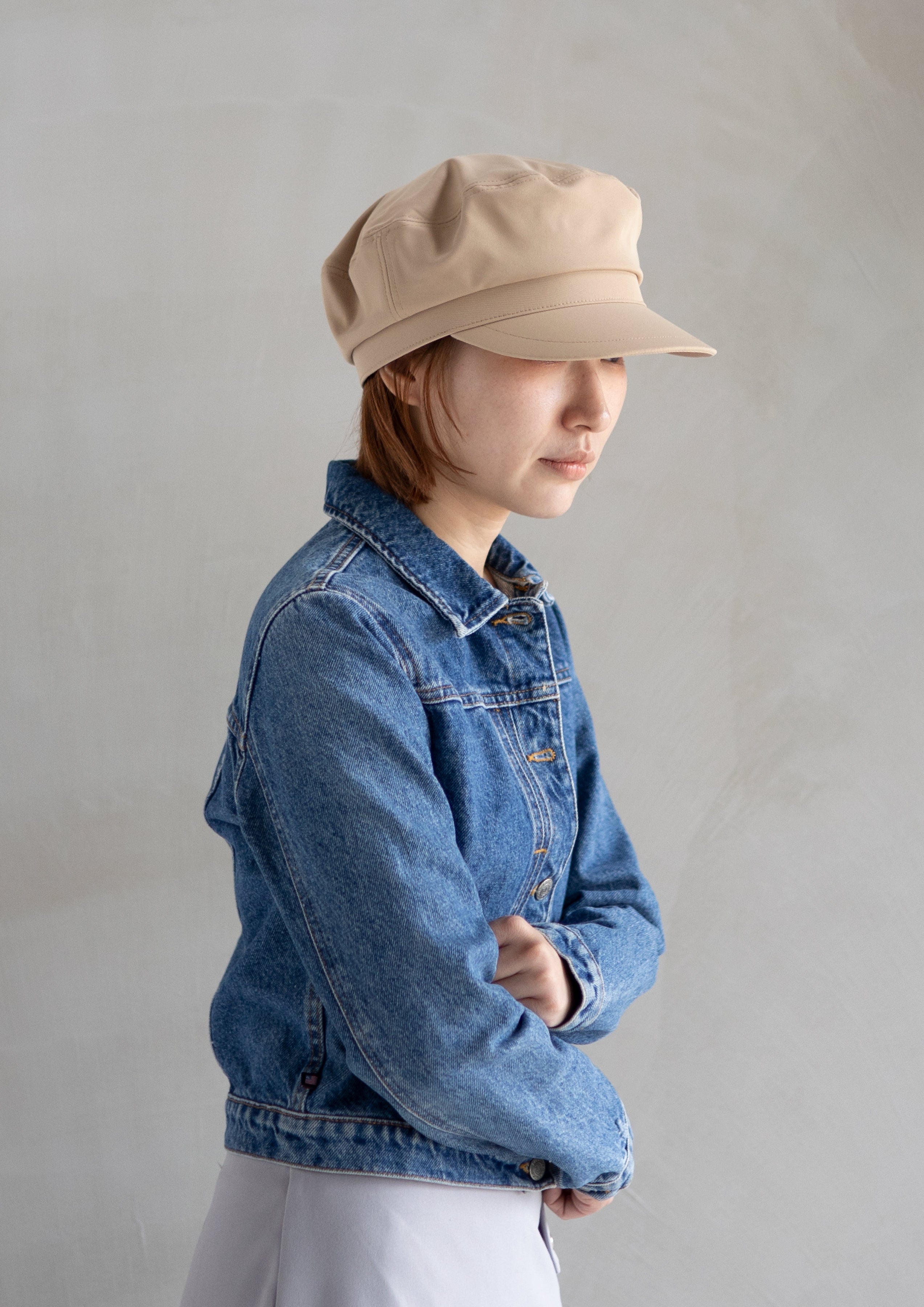 • ほどよいボリューム感とシャープなシルエットを両立した、JANE DOEのキャスケット。一般的なキャスケットよりも深めのかぶり設計で、頭の大きさを気にせず自然にフィット。